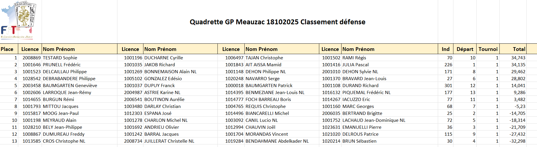 Après-midi Quadrette:  séance  -  attaquants  -  défenseurs  .  Libre parallèle : classement