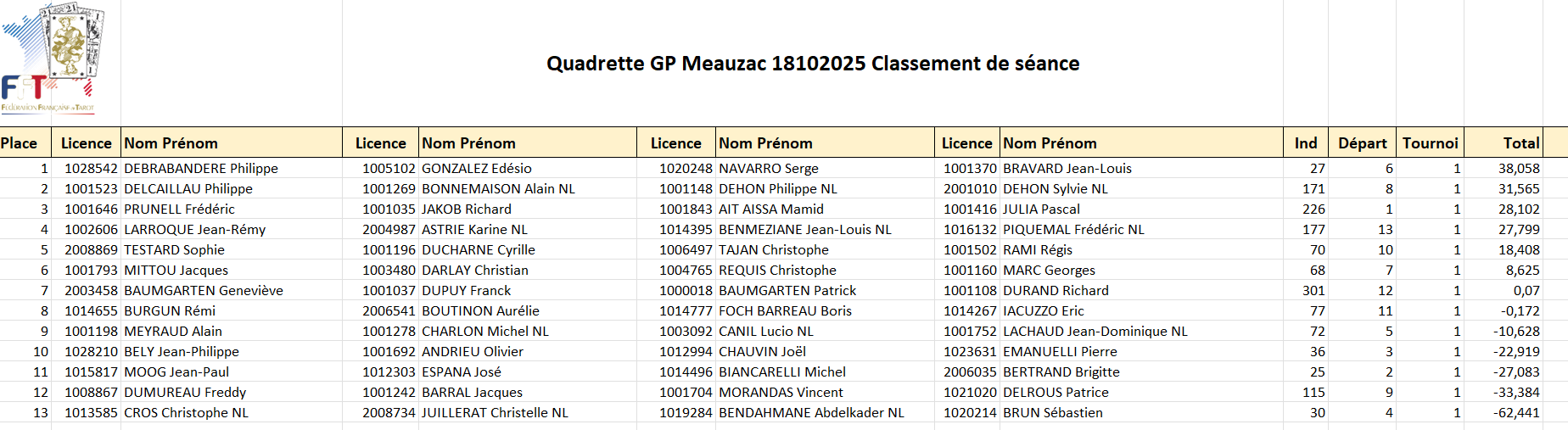 Après-midi Quadrette:  séance  -  attaquants  -  défenseurs  .  Libre parallèle : classement
