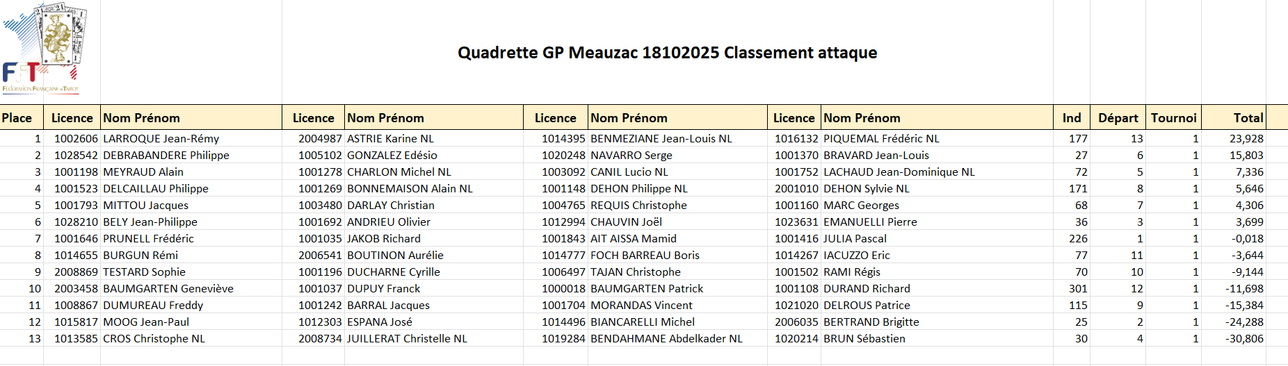 Vendredi soir: Triplette  alterné  -  attaques  -  défenses  . Libre parallèle: classement